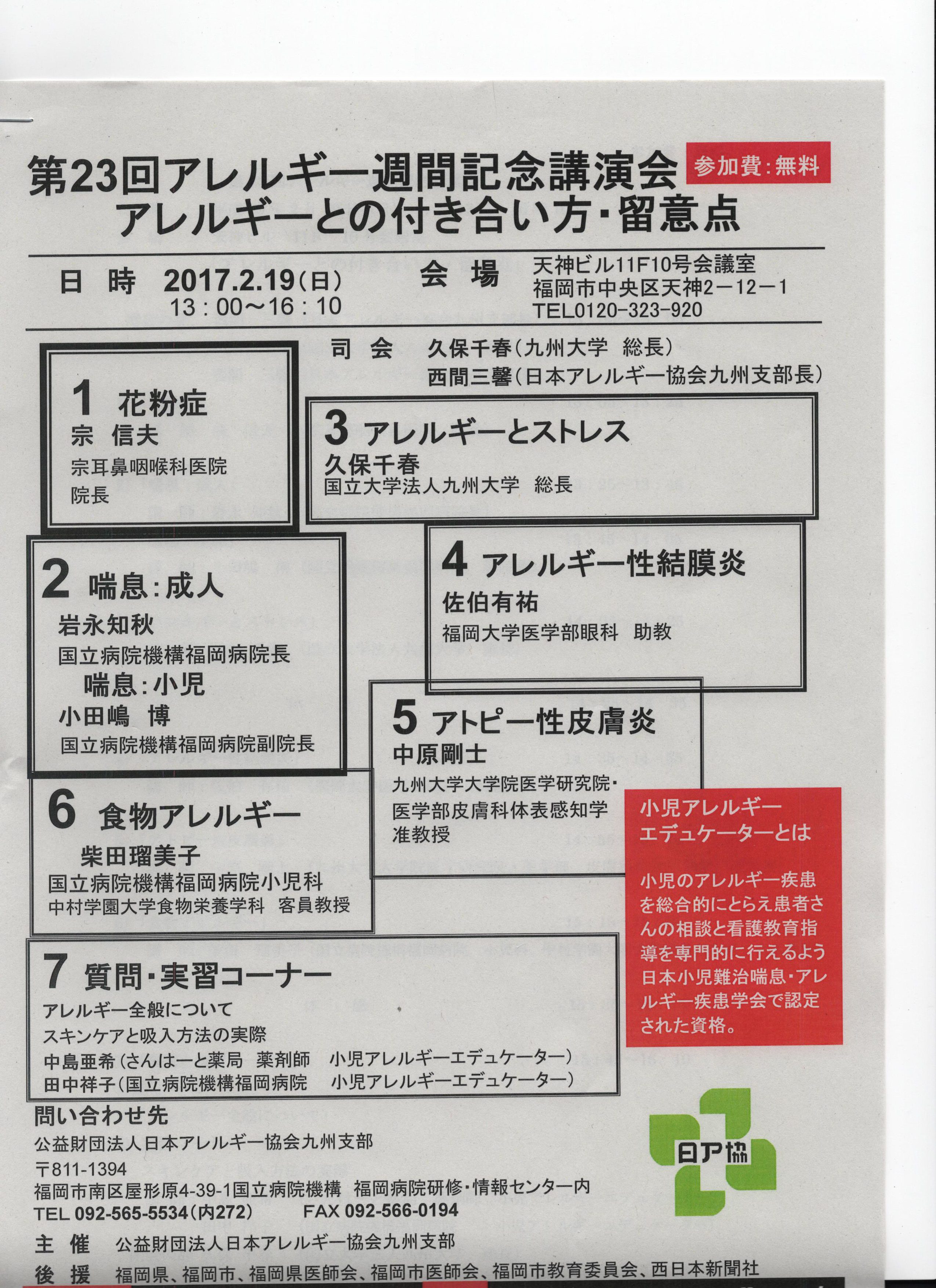 上記の日程で講演会があります。参加費は無料ですので是非お出かけください。今年もスギ花粉の季節になりました。